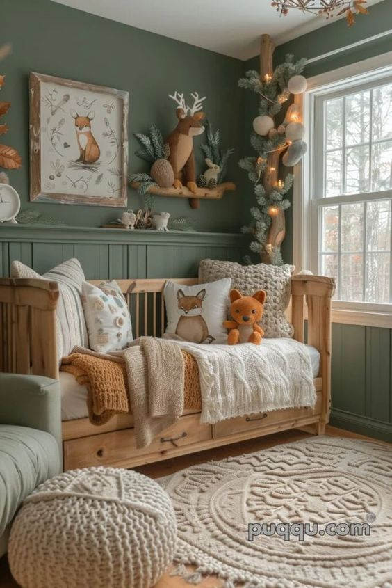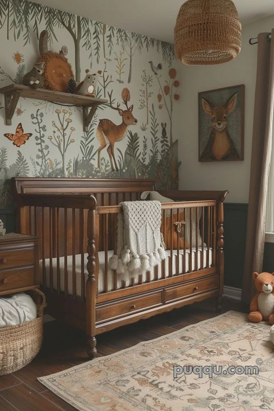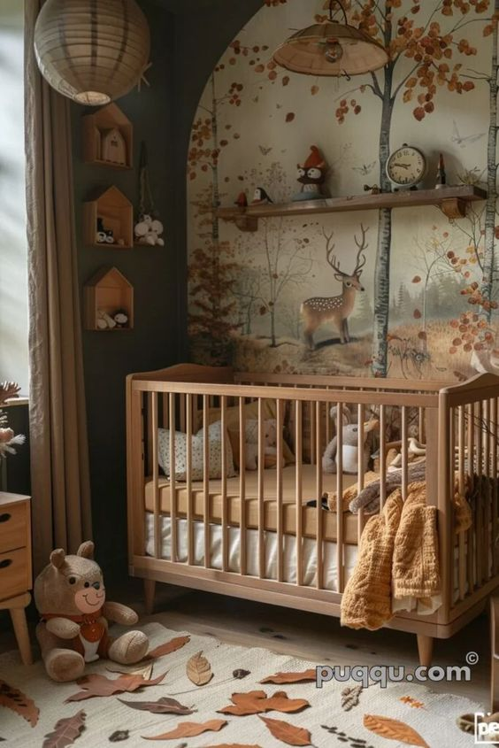 A cute forest nursery is characterized by its charming and elegant design. This style blends adorable elements with a forest theme to create a welcoming and delightful environment. The cute accents and thoughtful design details elevate the nursery, making it a perfect space for your baby to grow and play.