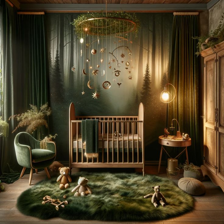 A magic forest nursery is designed to captivate with its enchanting charm. This decor style emphasizes natural beauty and a touch of whimsy, making it a mesmerizing choice. The room is filled with enchanting details that evoke a sense of wonder, creating a space that is both elegant and magical. The allure of this nursery is sure to enchant both parents and children alike.