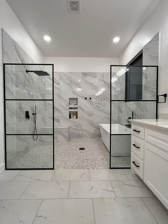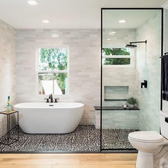 The black and white color combination is a classic choice for a master bath wet room. This design offers a sleek and sophisticated vibe that’s sure to impress. The timeless elegance of black and white creates a world-class wet room that instantly captures attention and provides a luxurious feel.