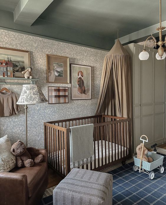 A preppy vintage nursery combines classic elegance with a refined, polished look. This style focuses on clean lines, tailored details, and traditional patterns, creating a sophisticated and stylish environment. The preppy vintage theme enhances the overall charm of the nursery, ensuring it remains both engaging and visually appealing. This approach is ideal for those seeking a nursery that reflects classic sophistication with a touch of refinement.