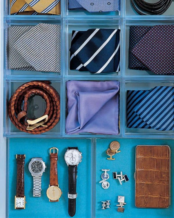 Organize your drawer contents with acrylic accessory trays. They are perfect for keeping jewelry, ties, and belts neatly arranged and accessible.