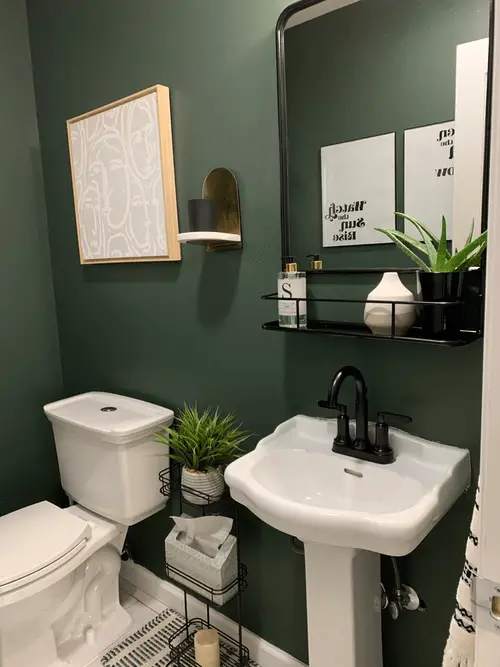 Consider giving your bathroom a unique makeover with deeper green tones. While many associate bathrooms with light and airy colors, a moody green can create a fresh and intriguing look. Pair dark green with simple white accents and lighter green hues to balance the darker tones and create a harmonious atmosphere.