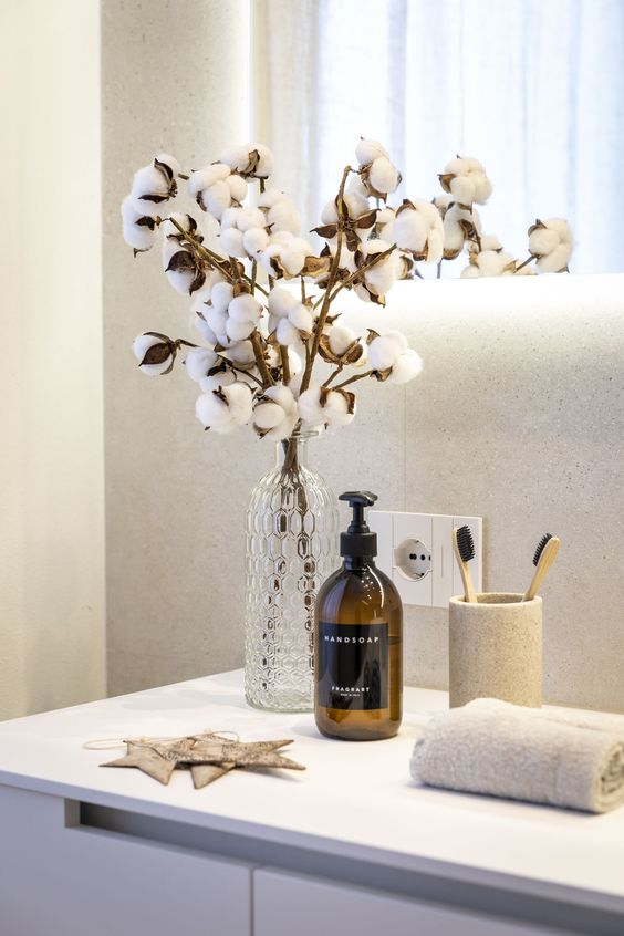 Bring a fresh and vital touch to the bathroom with potted plants or a small vase of greenery. Plants add a refreshing element and improve the overall atmosphere of the space.