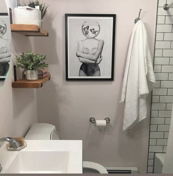 Hang a piece of artwork or a framed print on the bathroom wall to serve as a focal point. It adds visual interest and a touch of sophistication to the space.