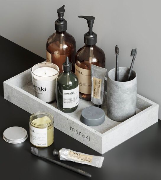 Organize toiletries and grooming essentials on a decorative tray or dish. This not only keeps items neatly arranged but also adds a visually appealing display to the counter.