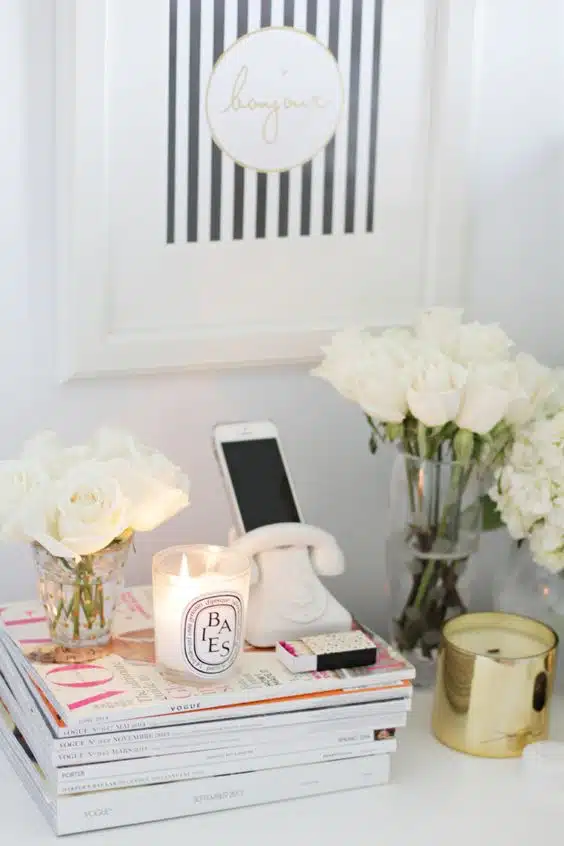 Books can be a stylish accessory on your nightstand. Choose a few coffee table books with eye-catching covers and stack them creatively. I usually opt for a combination of sizes: a large book as a base, a medium-sized one for interest, and a smaller book on top for a finishing touch.