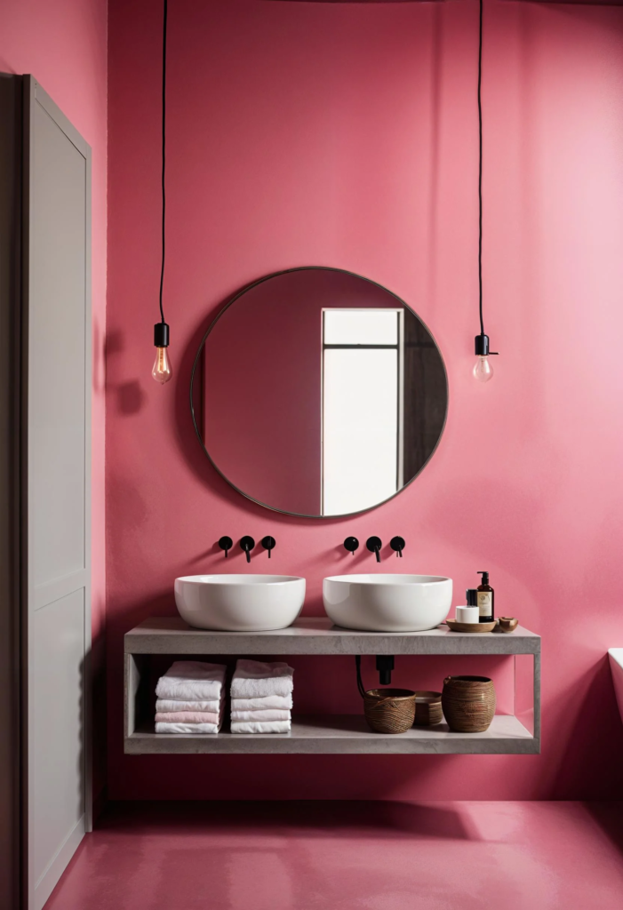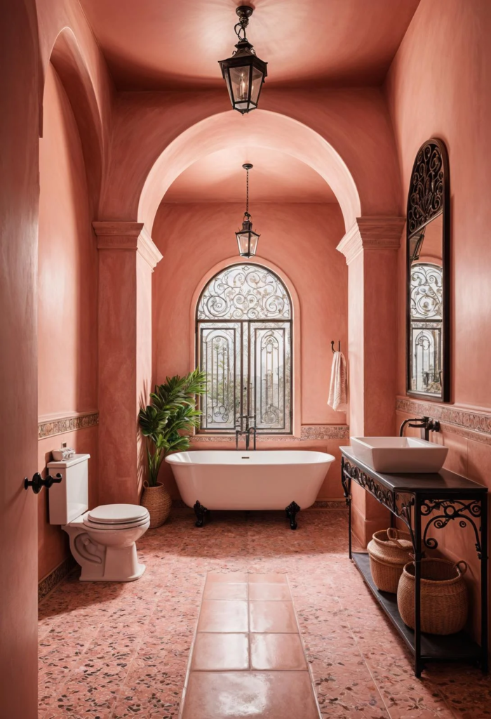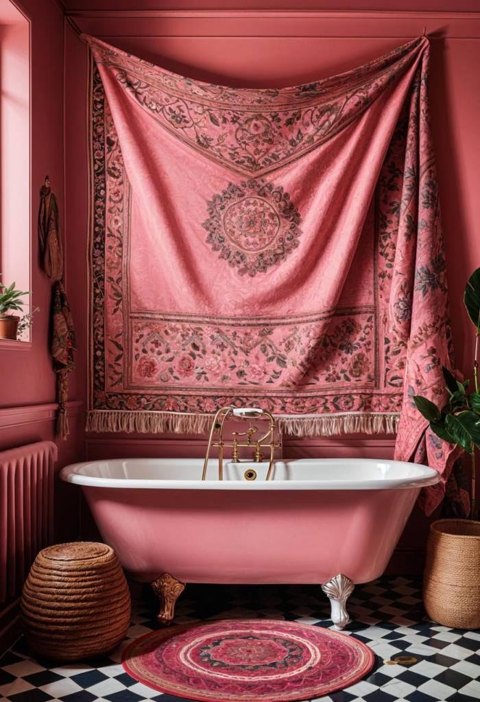 Transform your bathroom into a vibrant global retreat with pink and colorful textiles. Envision a space adorned with handwoven Turkish towels and ornate Persian rugs, creating a rich tapestry of cultural influences. This design turns your bathroom into a cozy haven that feels both exotic and welcoming. Each textile piece adds a touch of adventure to your daily routine, making every visit to the bathroom a small journey around the world.