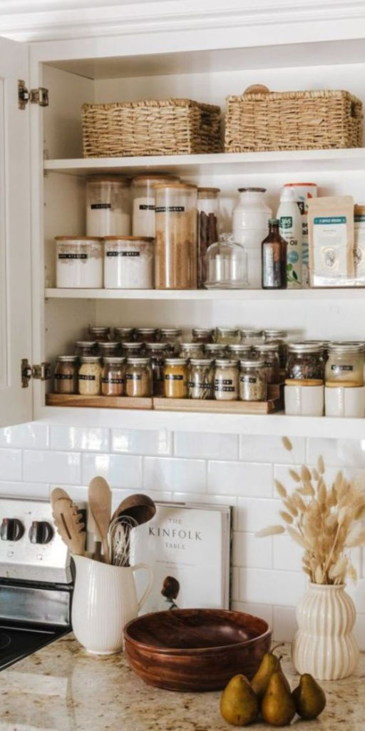 Maximize your cabinet space with a hanging organizer. By using one of these, you can efficiently store and organize your kitchen accessories, reducing countertop clutter. This tool helps you keep everything in its place, making your kitchen more functional and visually appealing.