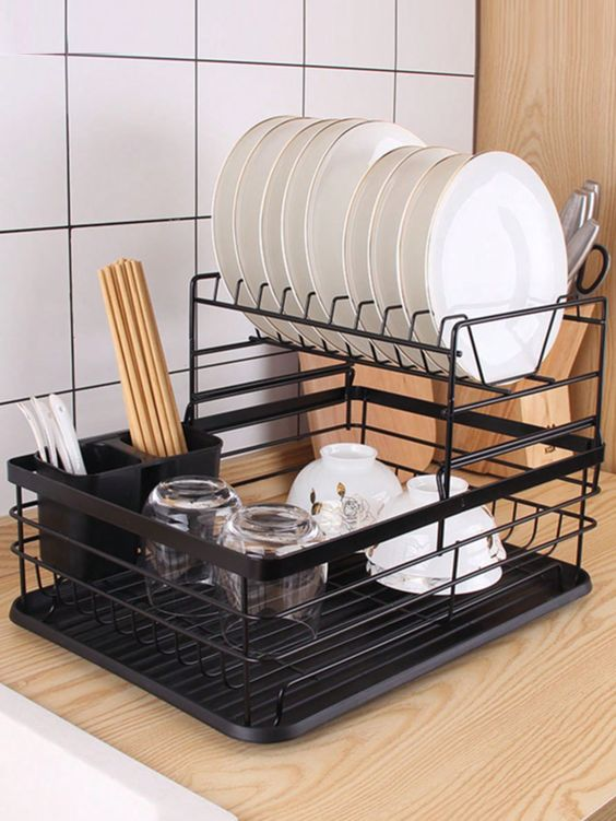 A dish rack is essential for drying dishes efficiently. It helps organize wet dishes and keeps them out of the way while they dry. A good dish rack will keep your kitchen organized and ensure dishes are ready to be put away.