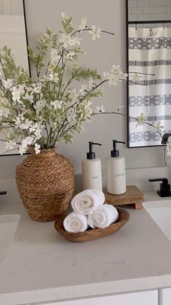 A rattan bathroom tray brings a unique texture and warmth to your space. The natural material adds a distinctive touch that enhances the overall theme of your bathroom. This tray combines beauty with functionality, creating an attractive and practical addition.