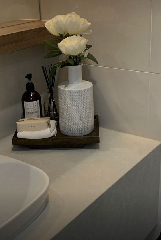 A warm bathroom tray adds a cozy and inviting touch to your space. Its design focuses on warmth and charm, creating a comforting environment. This tray enhances the overall ambiance with its elegant and warm appearance.