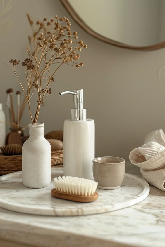 An elegant bathroom tray can significantly elevate the look of your space. This well-rounded design adds a refined touch, seamlessly beautifying any countertop. The tray’s elegant presence will enhance your bathroom’s overall aesthetic.