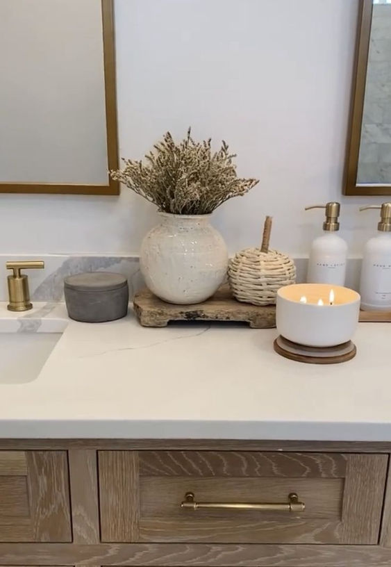 Farmhouse bathroom trays are always a captivating choice. Their chic and clean design adds a natural beauty that elevates any counter. The organic charm and rustic appeal of this tray ensure it complements your space beautifully.