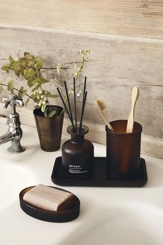 An earthy bathroom tray brings natural tones and textures to your space. Its grounded finish adds a warm and welcoming element to your decor. This tray is an excellent choice for those looking to incorporate a touch of nature into their bathroom.