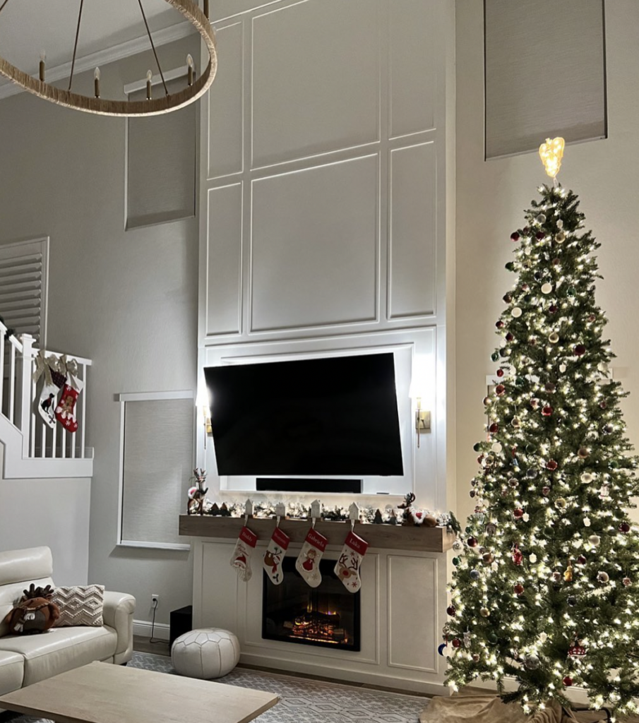 A high-ceiling fireplace adds charm and functionality year-round. During colder months, it provides warmth and coziness, while in warmer seasons, it continues to add ambiance with its captivating flames. Seasonal decor on the mantel can enhance the fireplace’s appeal, making it a versatile feature for any time of year.