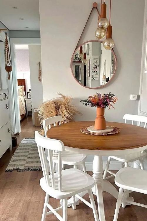 Mirrors can significantly enhance the light and space in your dining room. Opt for a mirror with a unique shape or an eye-catching frame to serve as a striking centerpiece.