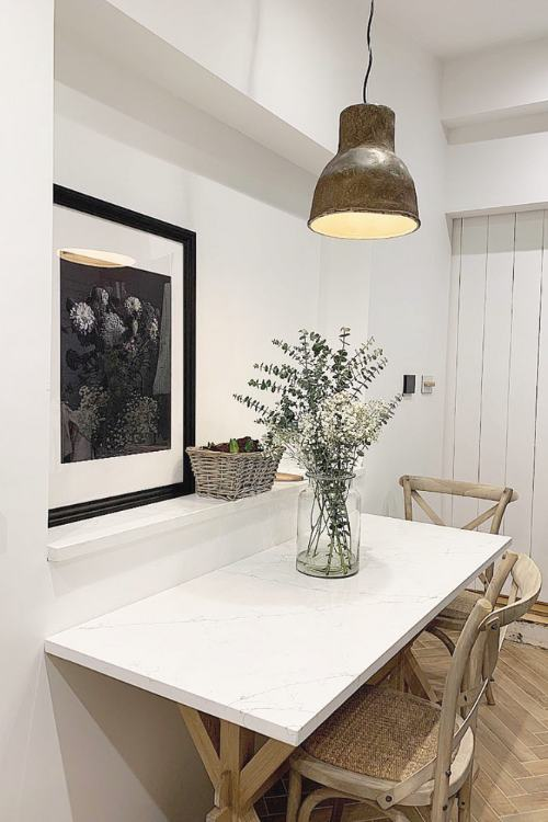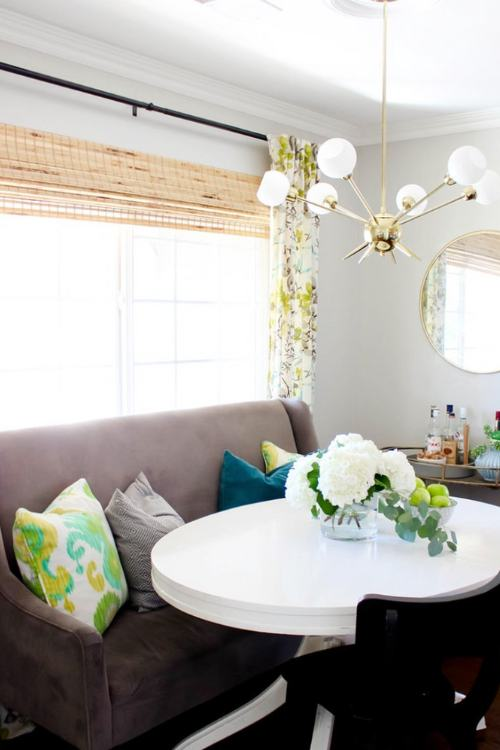 Add a vase of flowers and use wall sconces or pendant lights to define the nook and make it feel special.