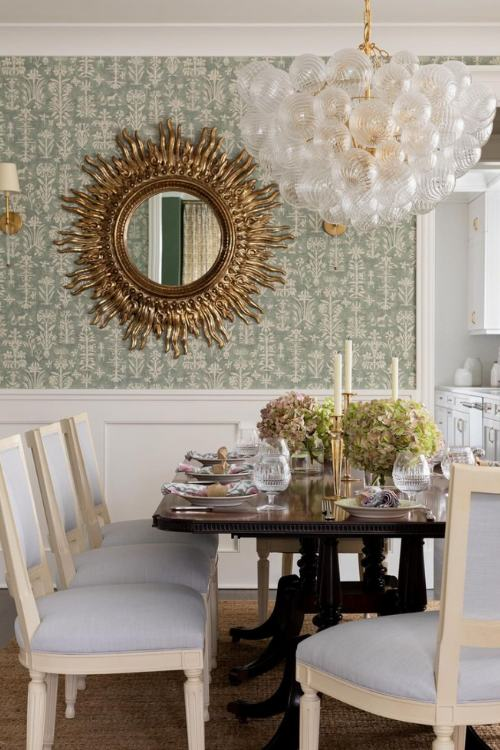 Gold accents can add a touch of elegance and glamor to your dining room. Look for gold details in lighting fixtures, mirrors, and tableware.