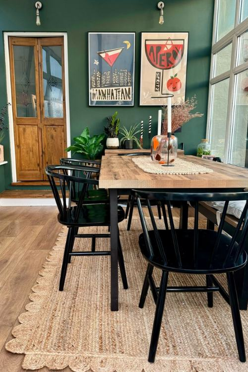 For a mystical and unique dining room, consider a witchy vibe. Use dark colors like black, deep purple, and forest green, and add magical decor such as crystals, candles, and gothic art.
