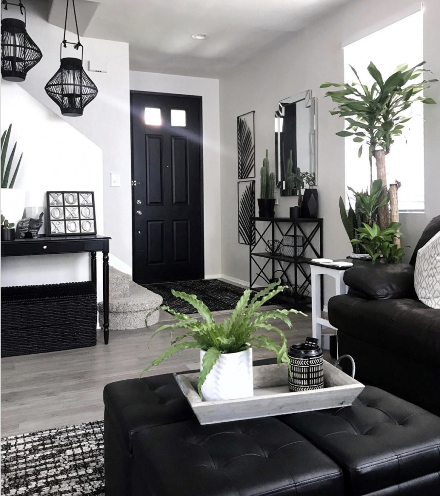 Black Front Door That Directly Opens Into Living Room With Interior Design