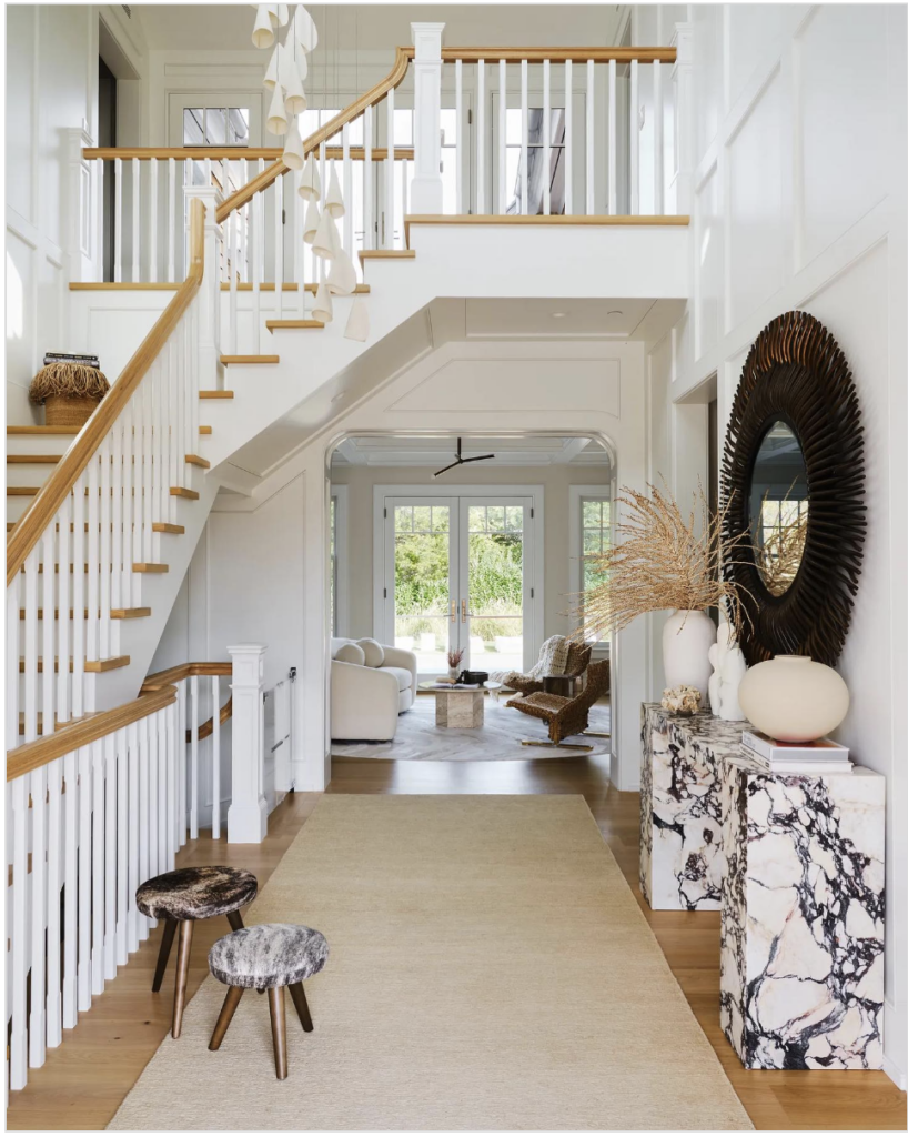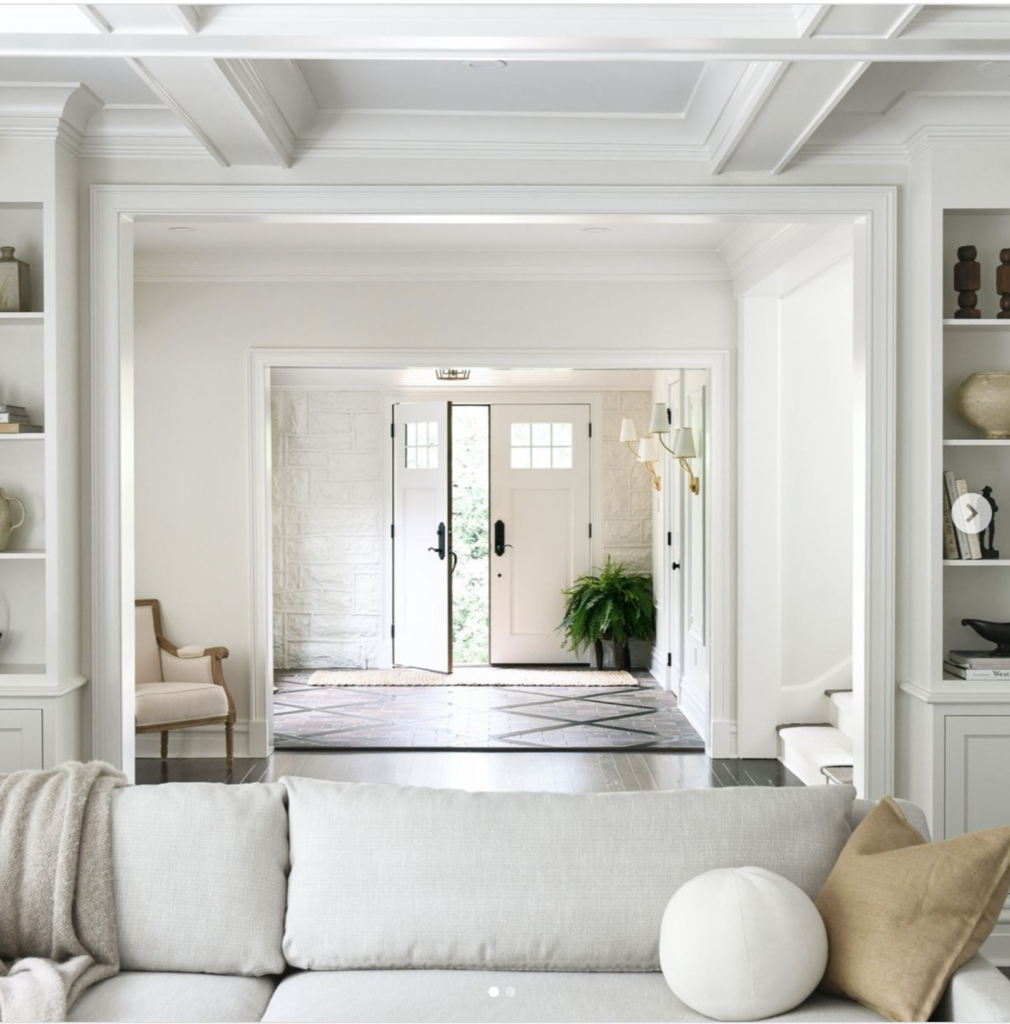 White is a timeless and versatile choice for living room entryways. Its brightness can instantly elevate the space, creating a serene and sophisticated atmosphere. By choosing white for your entryway, you set a tone of elegance and simplicity that welcomes guests with a clean, uncluttered aesthetic. This neutral palette also serves as a blank canvas, allowing you to easily update or change the decor and accessories to reflect different styles and seasons.
