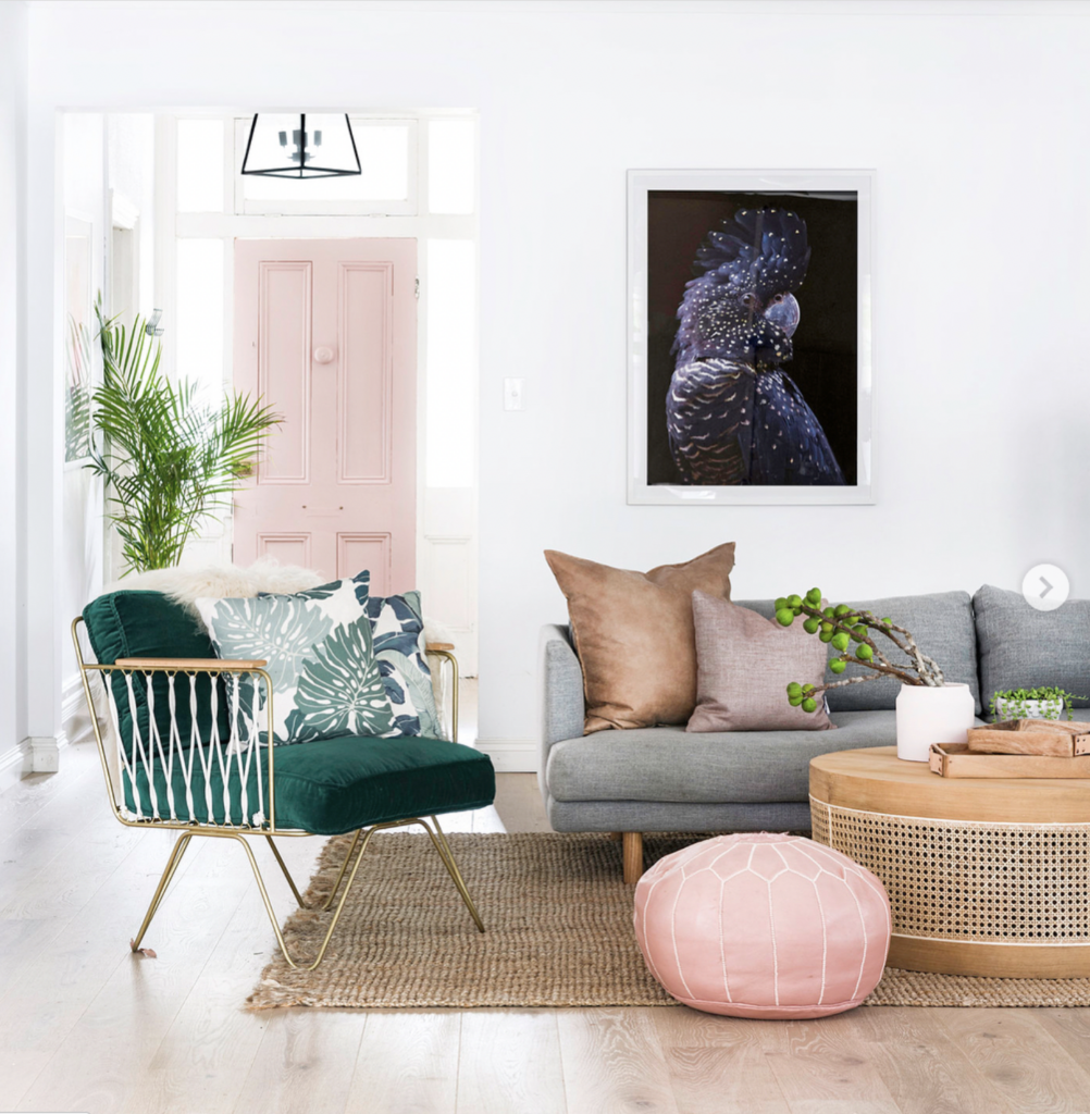 A pink front door serves as a bold, cheerful introduction to a vibrant living space. This playful color choice makes a strong statement and hints at the lively, dynamic decor inside. It’s a great way to infuse personality and charm into your home, setting an upbeat tone that invites guests to experience the colorful energy of your living area.