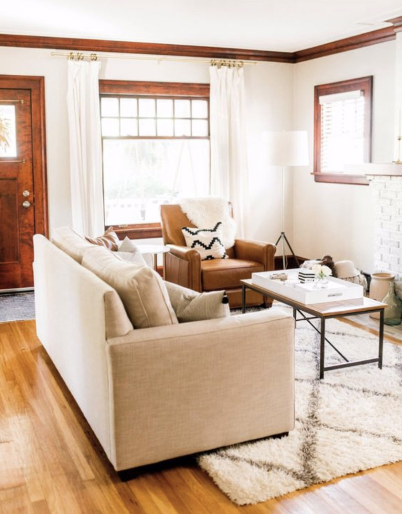 White walls and furniture create an airy, spacious feel, especially when paired with wooden flooring. The light-reflecting properties of white enhance the perception of space, while wooden floors add warmth and texture. This combination provides a versatile foundation for various decor styles, making it easy to update the look of your living room as desired.
