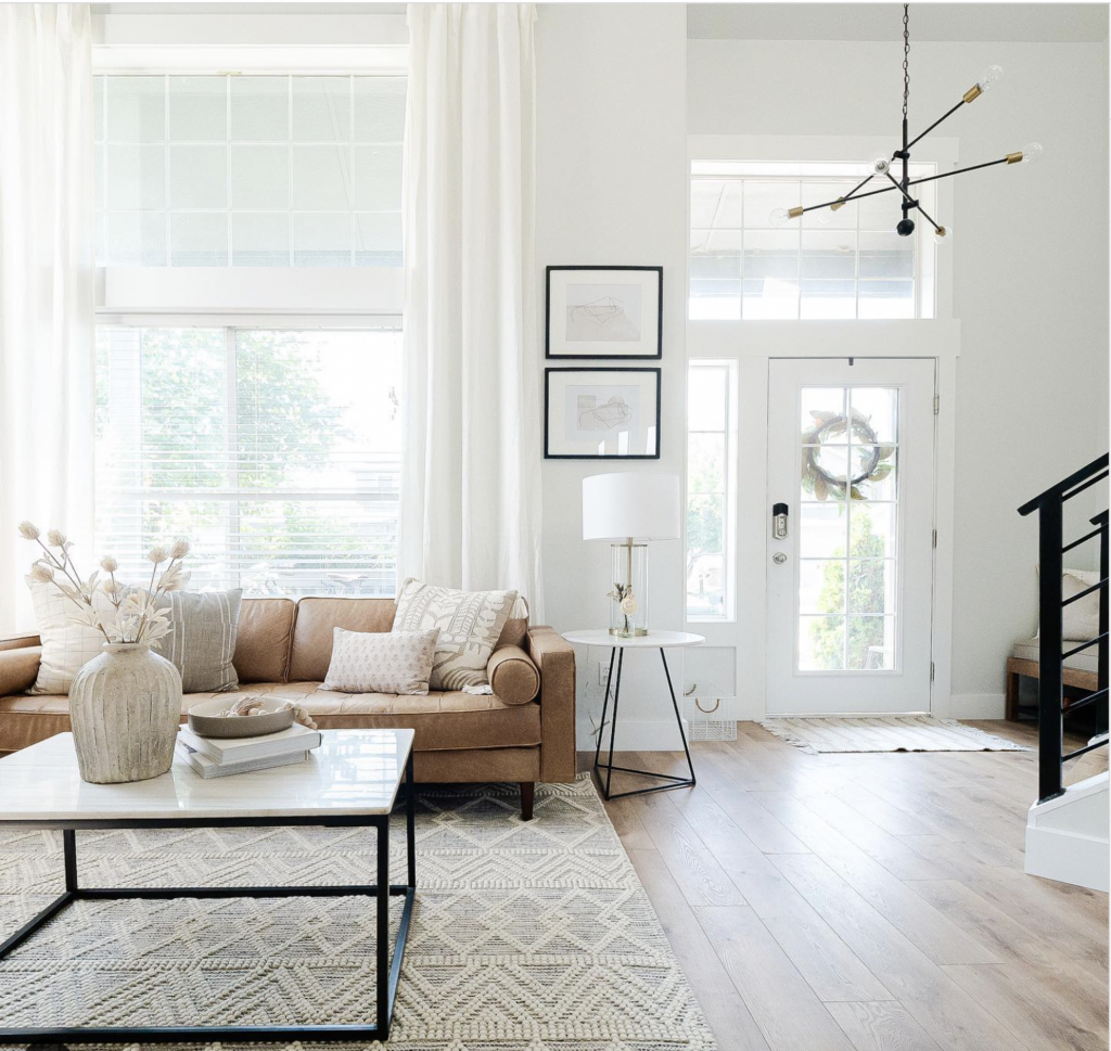 A boho-themed living room rug can bring a vibrant and eclectic touch to your space. Its colorful patterns and textures add visual interest and personality, enhancing the room’s overall charm. An open entryway combined with this rug allows natural light to fill the room, creating a bright and cheerful atmosphere that complements the bohemian style.