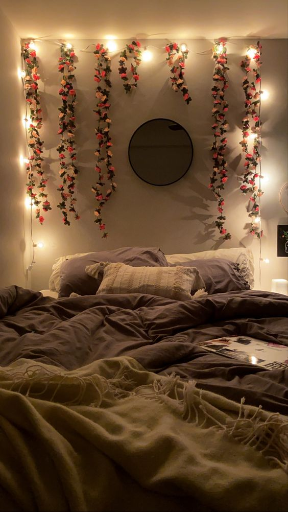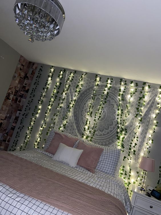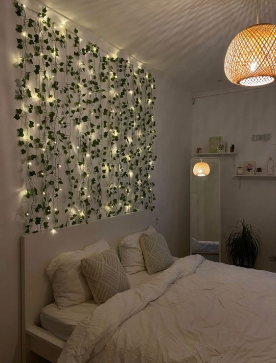 Combining LED lights with vines creates a striking and cozy atmosphere in your bedroom. This unique pairing adds both illumination and a natural touch to the space. The LED lights bring a modern and vibrant look, while the vines add a charming, organic element, resulting in a welcoming and visually appealing setup.