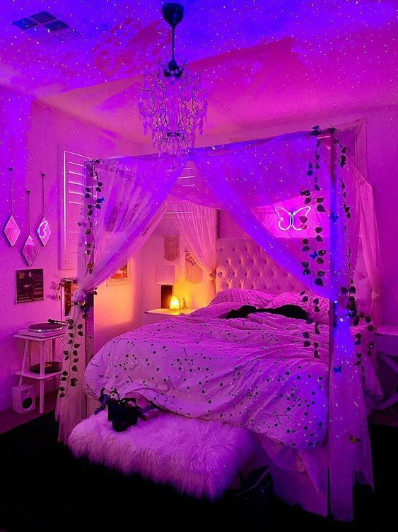 Starry decor brings a magical and enchanting element to your bedroom. Glowing stars create a celestial ambiance that enhances the room’s aesthetic. This decor choice adds a dreamy and whimsical touch, making the space feel both captivating and serene.
