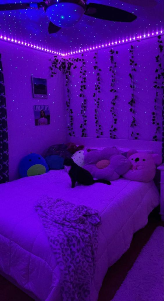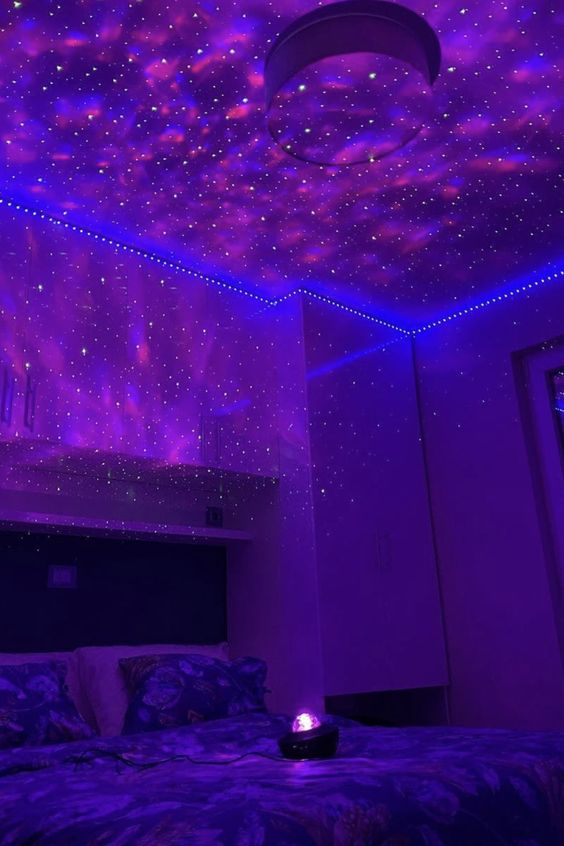 Projector decor allows you to project specific designs, such as stars or other themes, onto your bedroom walls. This modern approach adds a unique and customizable element to the room’s decor. The projected images enhance the overall ambiance and create a visually captivating experience.