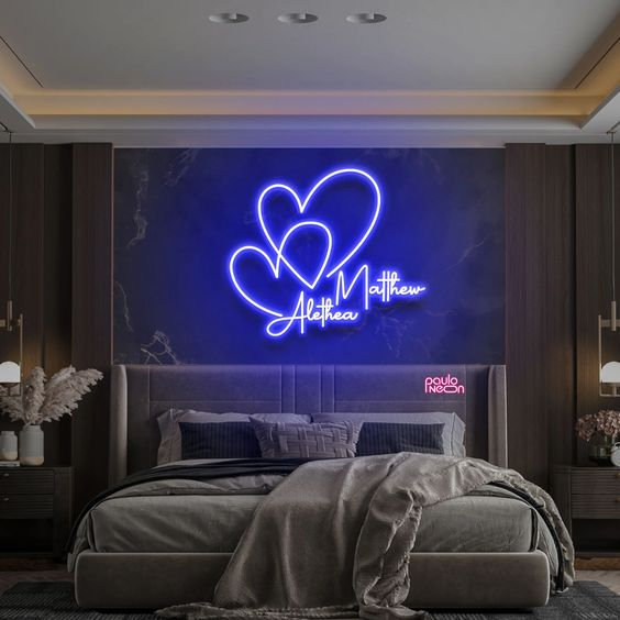 A personalized neon sign adds a unique and customized element to your bedroom. Choose a design or message that reflects your personal style or interests, and incorporate it into your decor. This custom touch makes the neon sign a standout feature that adds both personality and charm to the room.