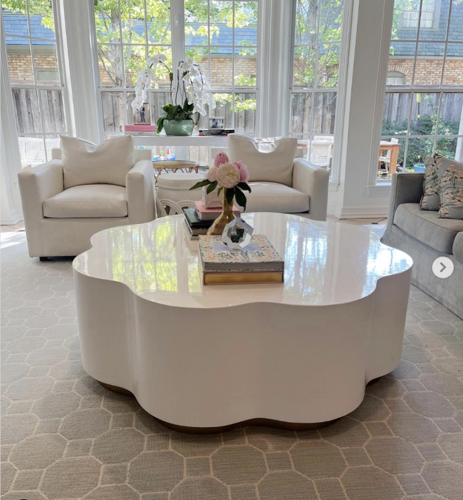 This coffee table stands out with its distinctive flower-shaped design and pristine white finish. Moving away from traditional shapes, it brings a fresh and vibrant element to the room, making it a unique focal point that adds both style and elegance.