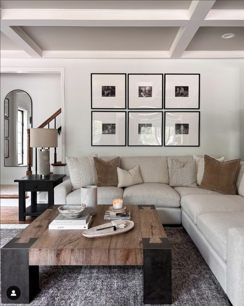 In a farmhouse living room, an extra-large coffee table can blend rustic charm with a touch of grandeur. Opting for a table made from reclaimed wood enhances the room with character and history, while its weathered appearance aligns perfectly with the cozy, welcoming ambiance of farmhouse decor.