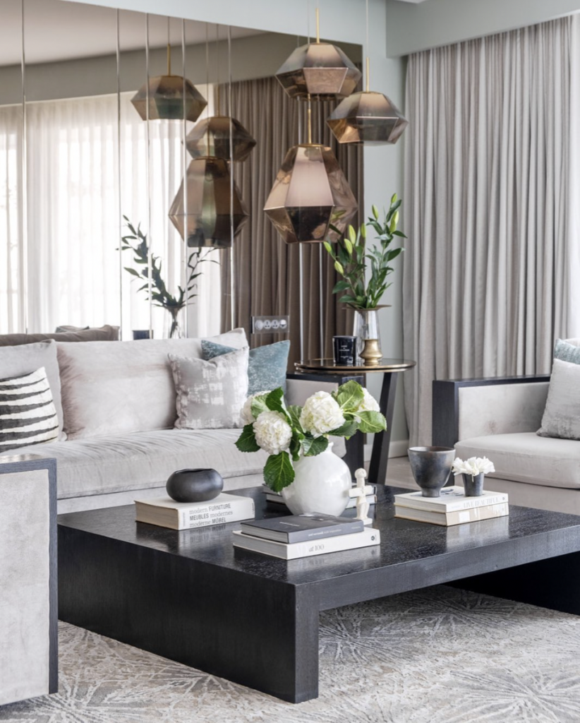 The contrast between a black coffee table and a white sofa creates a striking monochromatic look. This high-contrast combination not only enhances visual appeal but also makes the room feel more spacious and stylish.