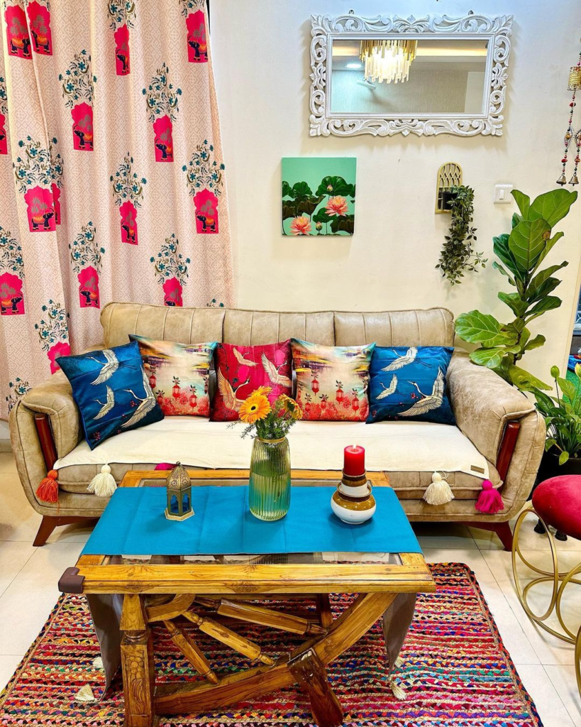 Every meeting is given vitality by a colorful living room, which elevates commonplace moments to unforgettable ones. It’s an artistic fusion of patterns, textures, and hues that inspire delight and creativity rather than merely focusing on vibrant colors. This vibrant area showcases individual flair and creates a warm environment where relationships grow and dialogues take place. Vibrant design demands a deliberate strategy that strikes a balance between strong statements and calming components to produce a room that is both cozy and stimulating.