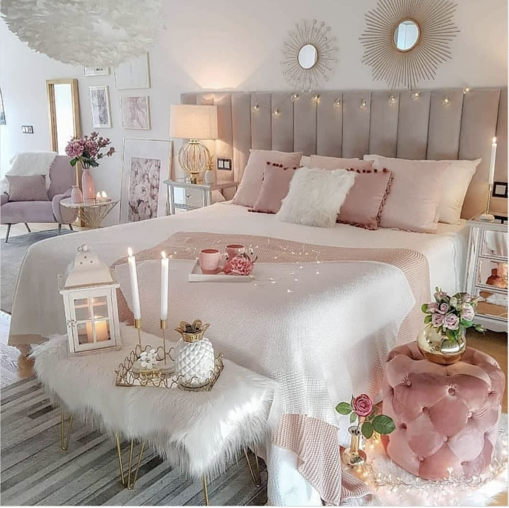 Incorporating pink and gold into your bedroom decor adds a touch of romance and luxury. Pink brings a delicate, loving quality, while gold adds a hint of opulence. Together, they create a romantic sanctuary that feels both elegant and affectionate.