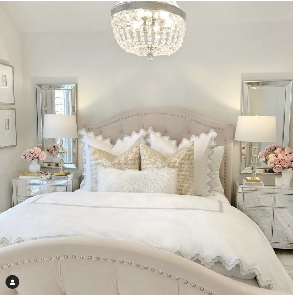 Mirrors placed on either side of your upholstered bed create an illusion of space, making the room feel more open and airy. This design choice not only enhances the romantic vibe but also adds visual interest and a sense of luxury to the bedroom.