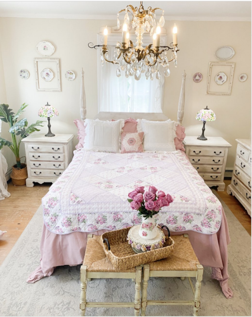 Romantic interior design always produces a cozy and serene atmosphere. The combination of cozy textiles, subtle lighting, and muted colors creates a calming and friendly atmosphere.