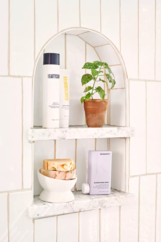 If you DIY a recessed wall shelf, be mindful of the plumbing and pipes in your shower.
