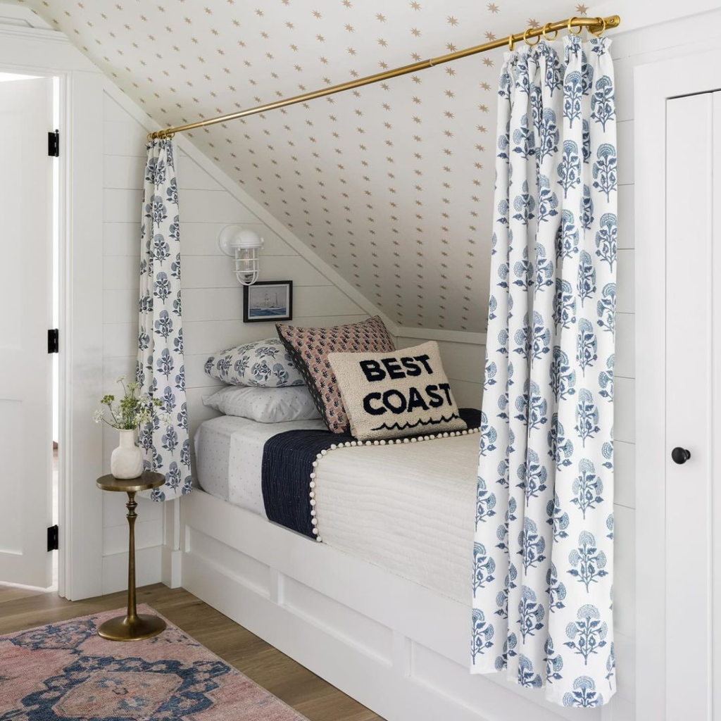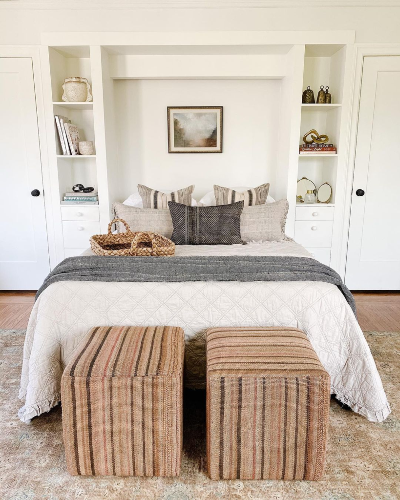 In rooms with architectural nooks or recesses, placing the bed within these spaces can create a built-in effect. This approach cleverly uses the room’s unique shape, making the most of otherwise awkward spaces and adding character to the room.