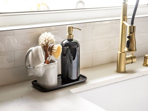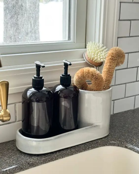 A dish soap holder helps keep your countertop tidy and organized. Choose a stylish holder that complements your kitchen decor while providing a practical solution for storing dish soap, ensuring that it’s both functional and aesthetically pleasing.