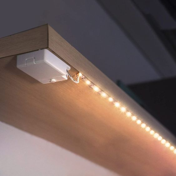 Illuminate your kitchen countertops with LED strip lights installed under the top cabinets. These lights provide a charming and practical way to brighten your workspace, enhancing visibility and adding a touch of modern elegance.
