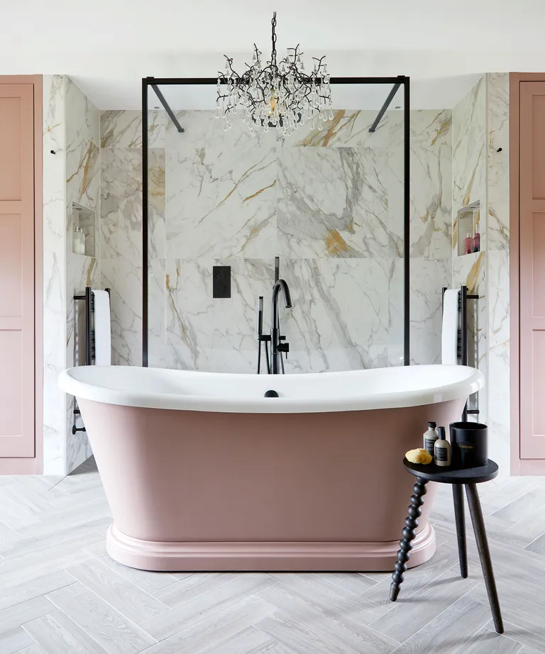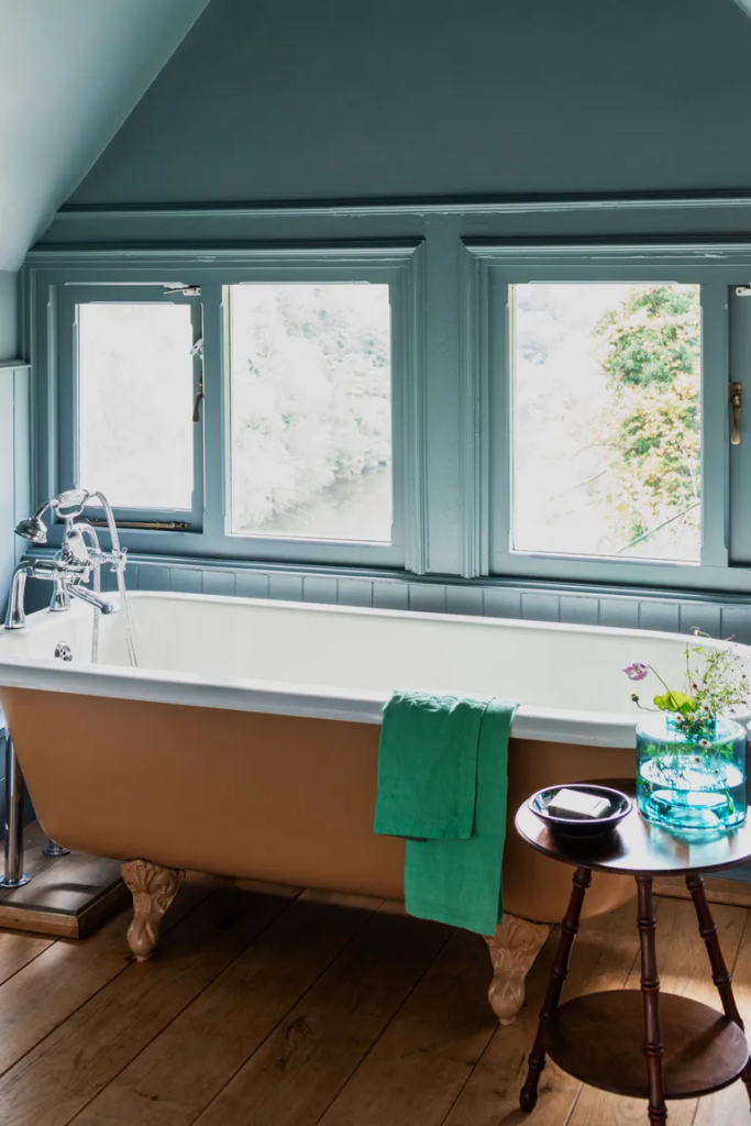 When working with limited space, a colored bath can be a striking focal point. Introducing color through a bath can add personality and create a visual distraction. A freestanding bath in a pastel shade or with vertical ribbing can make the space feel larger and more engaging.