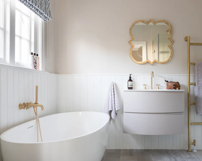 Squeeze in shelving to boost storage in a small bathroom