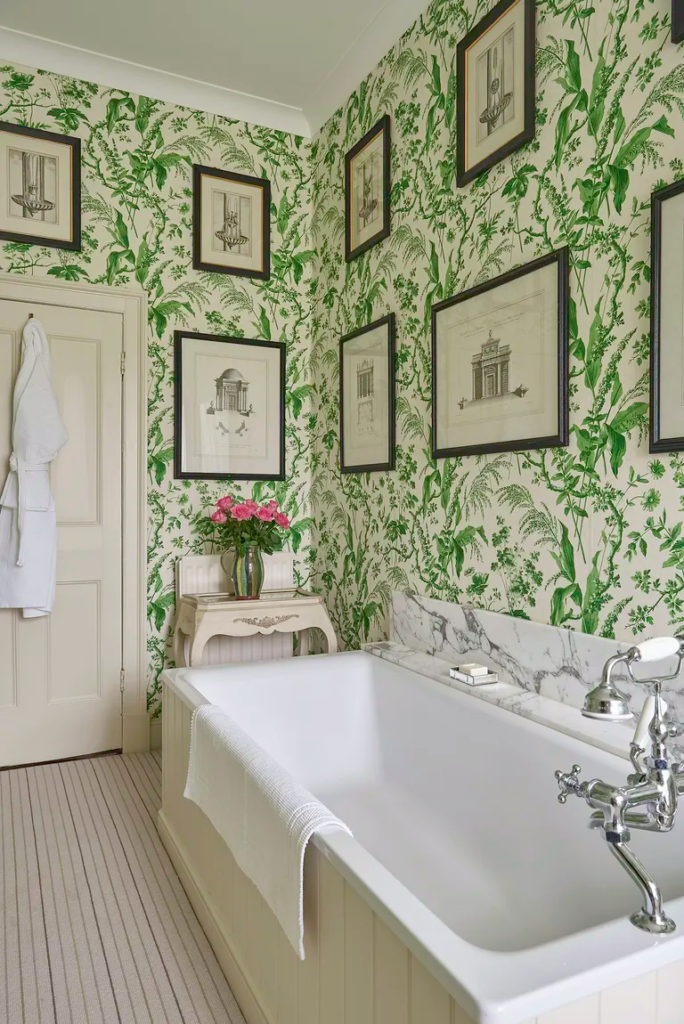 While small bathrooms often benefit from light, airy colors, they also offer a great opportunity to experiment with bold patterns and rich colors. Don’t shy away from using dramatic wallpaper to make a statement. A vibrant or intricate design can transform a compact space into a stylish retreat, proving that even small rooms can handle big design moves.