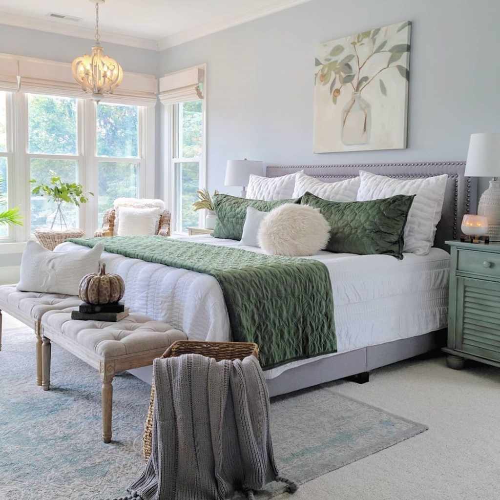A chandelier adds a touch of elegance to any space, whether it is placed above your bed or serves as the main focal point.