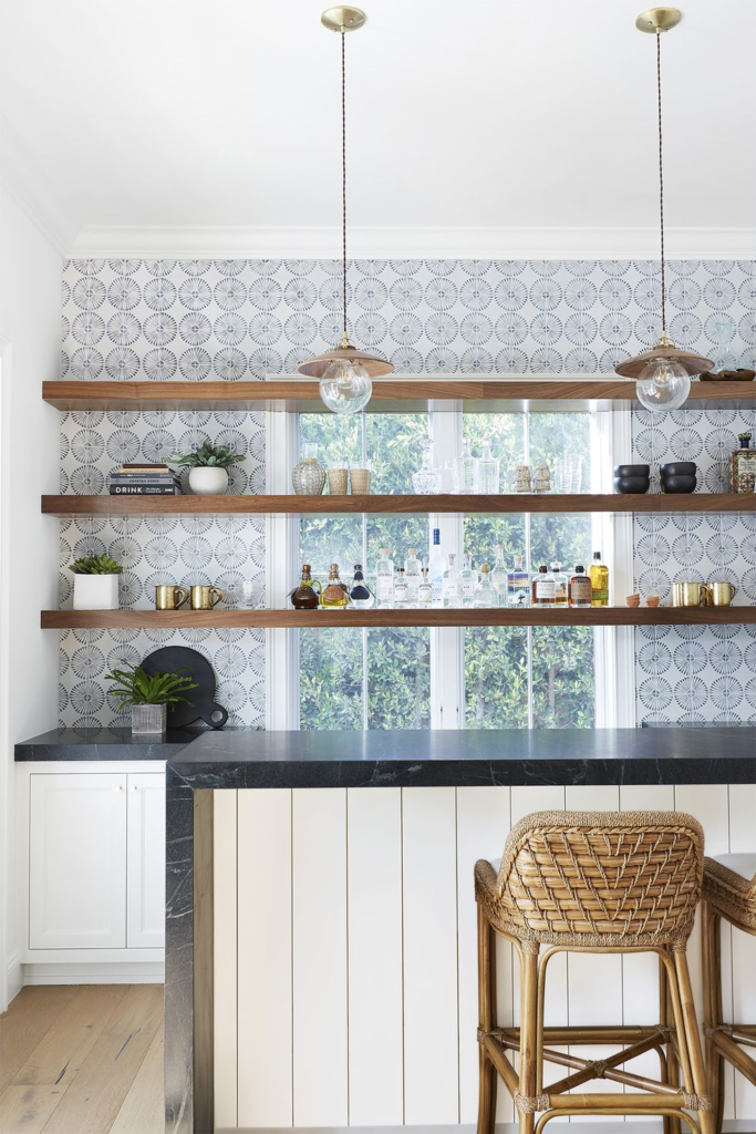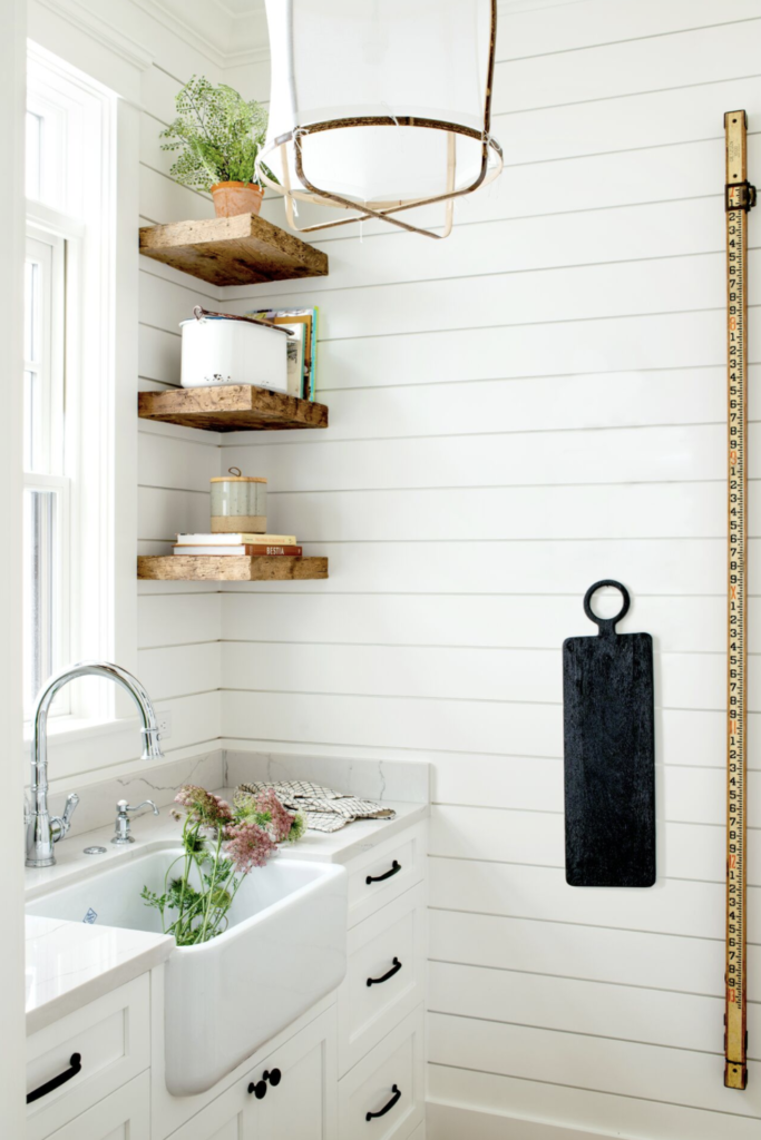 Utilize corner spaces with small corner shelves if you don’t have room for wall-to-wall shelving. These shelves are perfect for displaying decorative items, cookbooks, or keeping frequently used condiments and spices within reach.