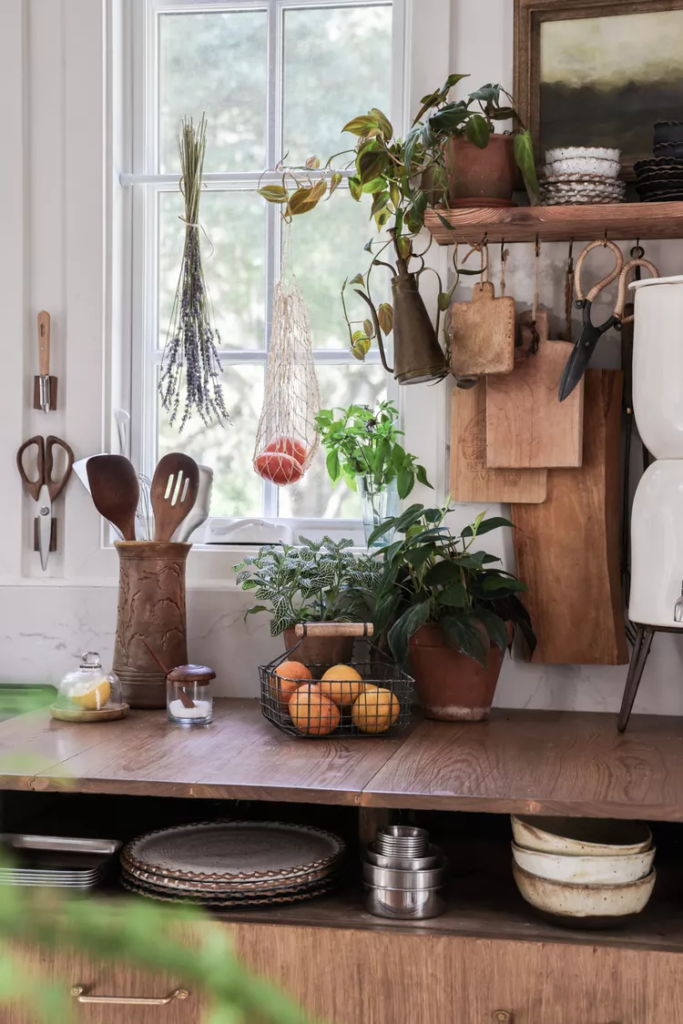 Introduce a touch of greenery to your kitchen with a vertical herb garden. Hang small pots of herbs on a wall-mounted trellis or shelf for easy access while cooking, or opt for low-maintenance plants to enhance your kitchen’s ambiance.