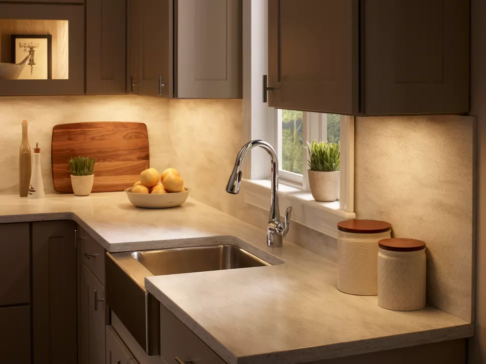 Illuminate your kitchen and create a cozy atmosphere with under-cabinet lighting. LED strip lights are an affordable, easy-to-install option that modernizes your kitchen and enhances its functionality.